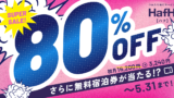 HafHの友だち招待!招待コードを使うと初月80%HafHの友だち招待!招待コードを使うと初月80%オフで登録できます。さらに、厳選100ホテルから選べる無料宿泊券が当たるチャンス!
