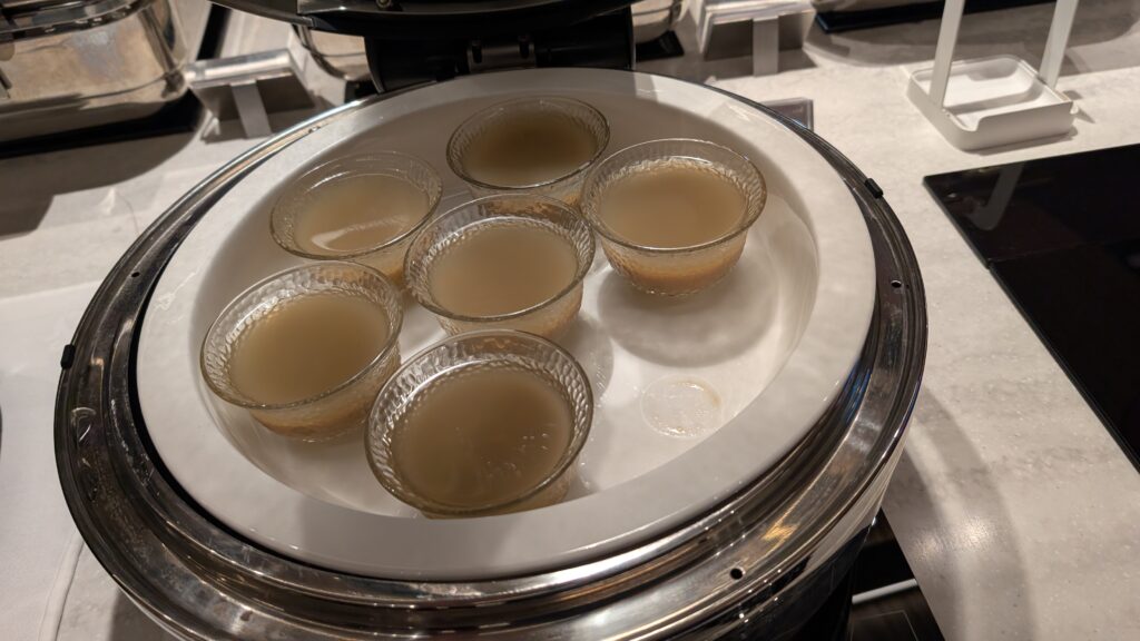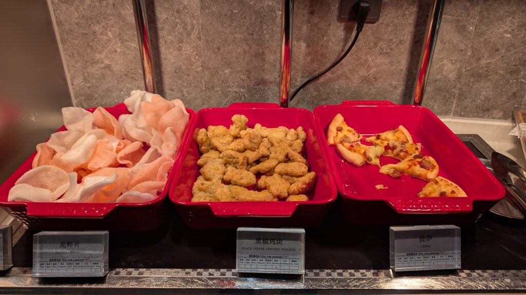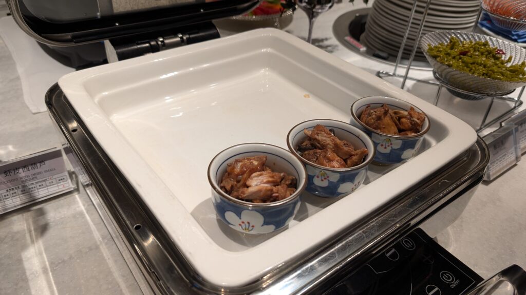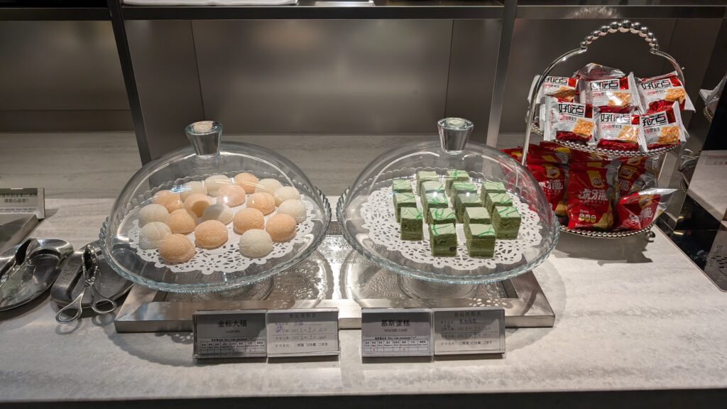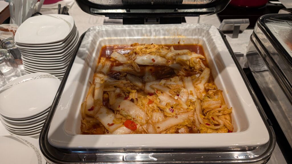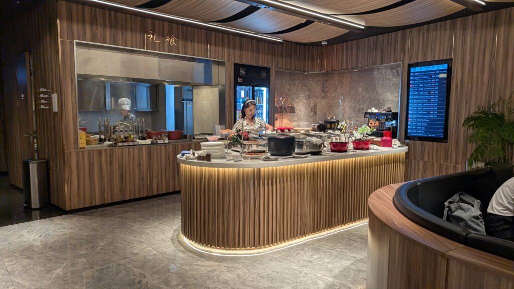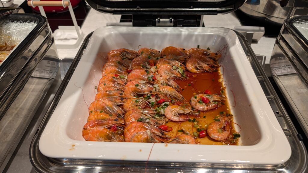 食事に関してはビュッフェ台の他に、ライブキッチンがある。点心をはじめ、多くの中華料理や杭州料理のオーダーが可能。