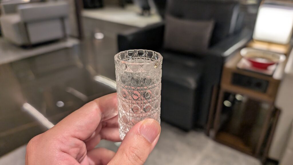 食事を楽しんでいると、スタッフがショットグラスに入ったお酒をサービスしに席を回っていた。思わず飲んでみたが、白酒じゃなかったようで一安心。